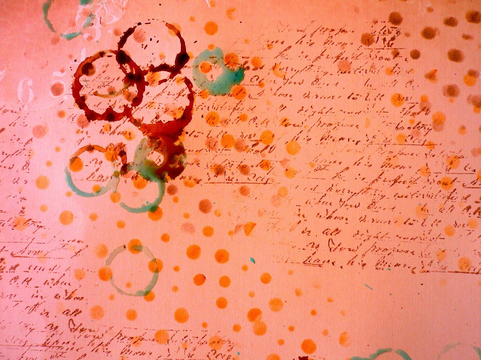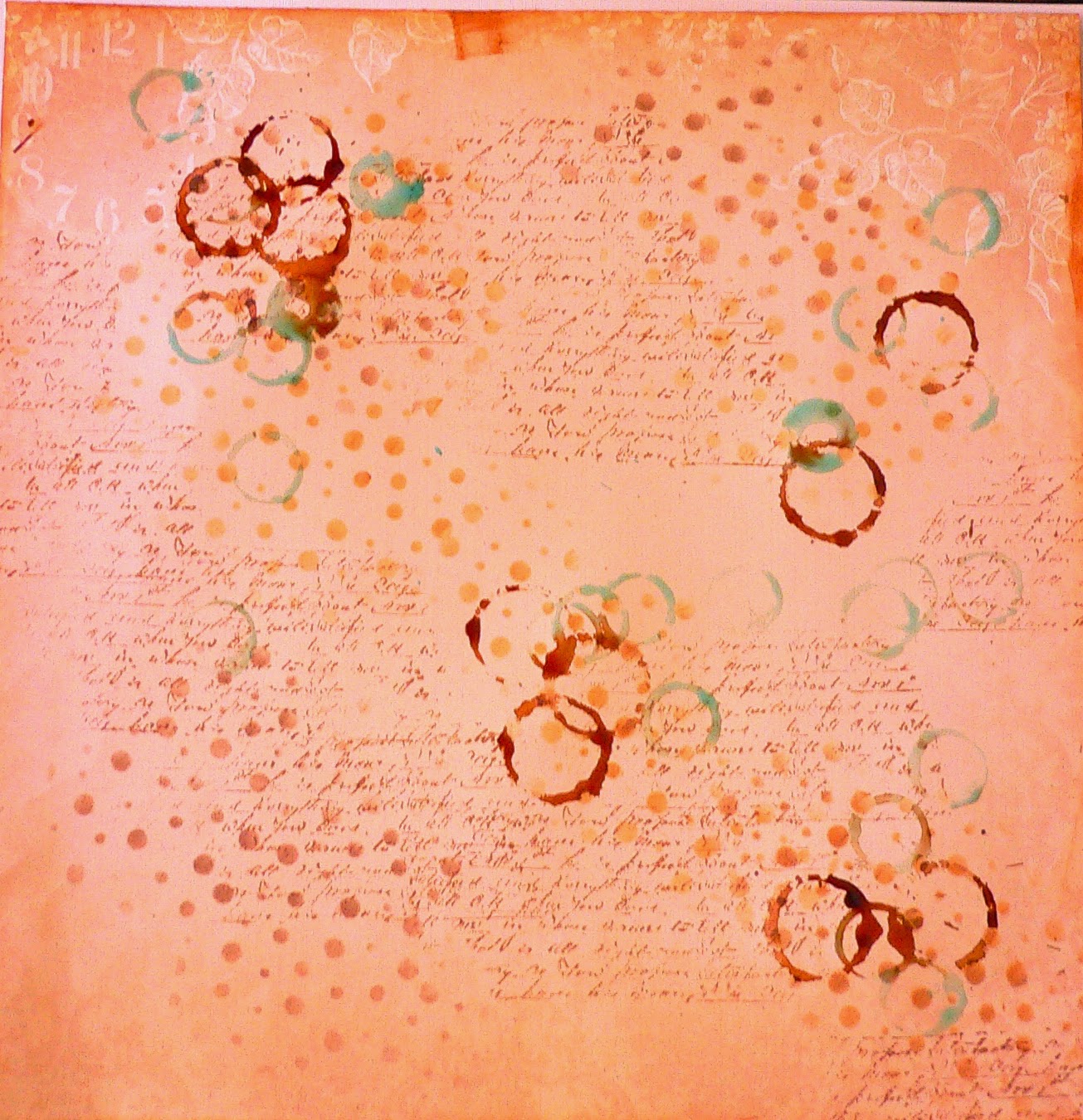 1. Firstly I created a background with stamps, inks, masks and paints, on