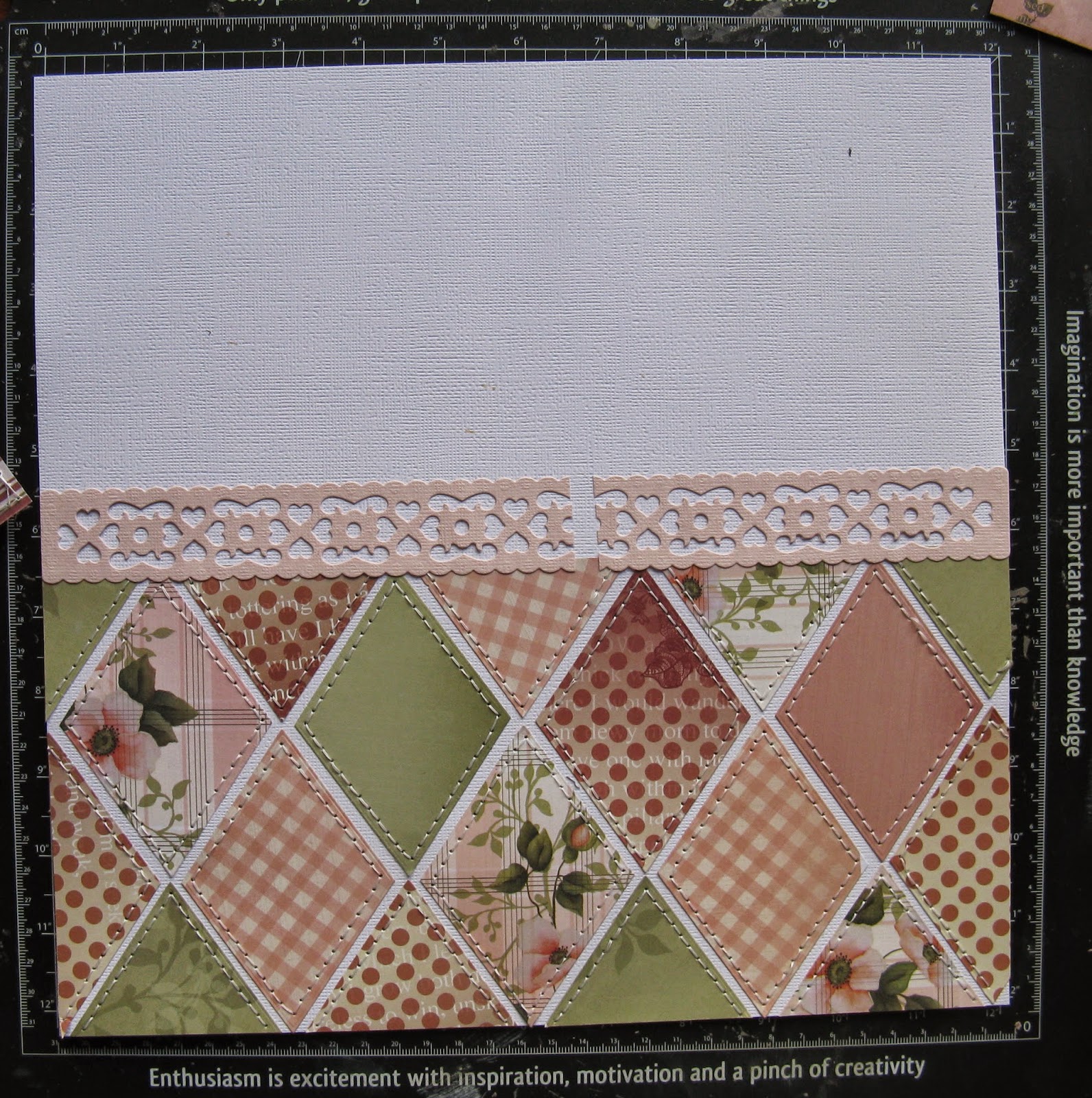Using the Diamonds Nesting Dies from the new Sweet Accents collection I cut out a heap and then cut some in half and stitched (yep hand stitched, crazy I know!) around each piece. You can see from the pics how the rest of the background came together.