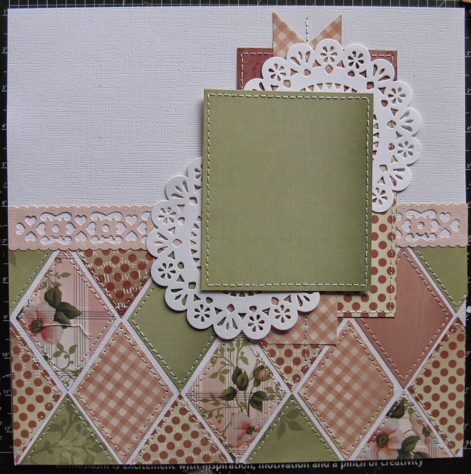 I have tucked two doilies under my photo mat - Cappuccino die and also one of the longer border dies Chandeliers Set. These are a couple of older dies from the Momento collection.