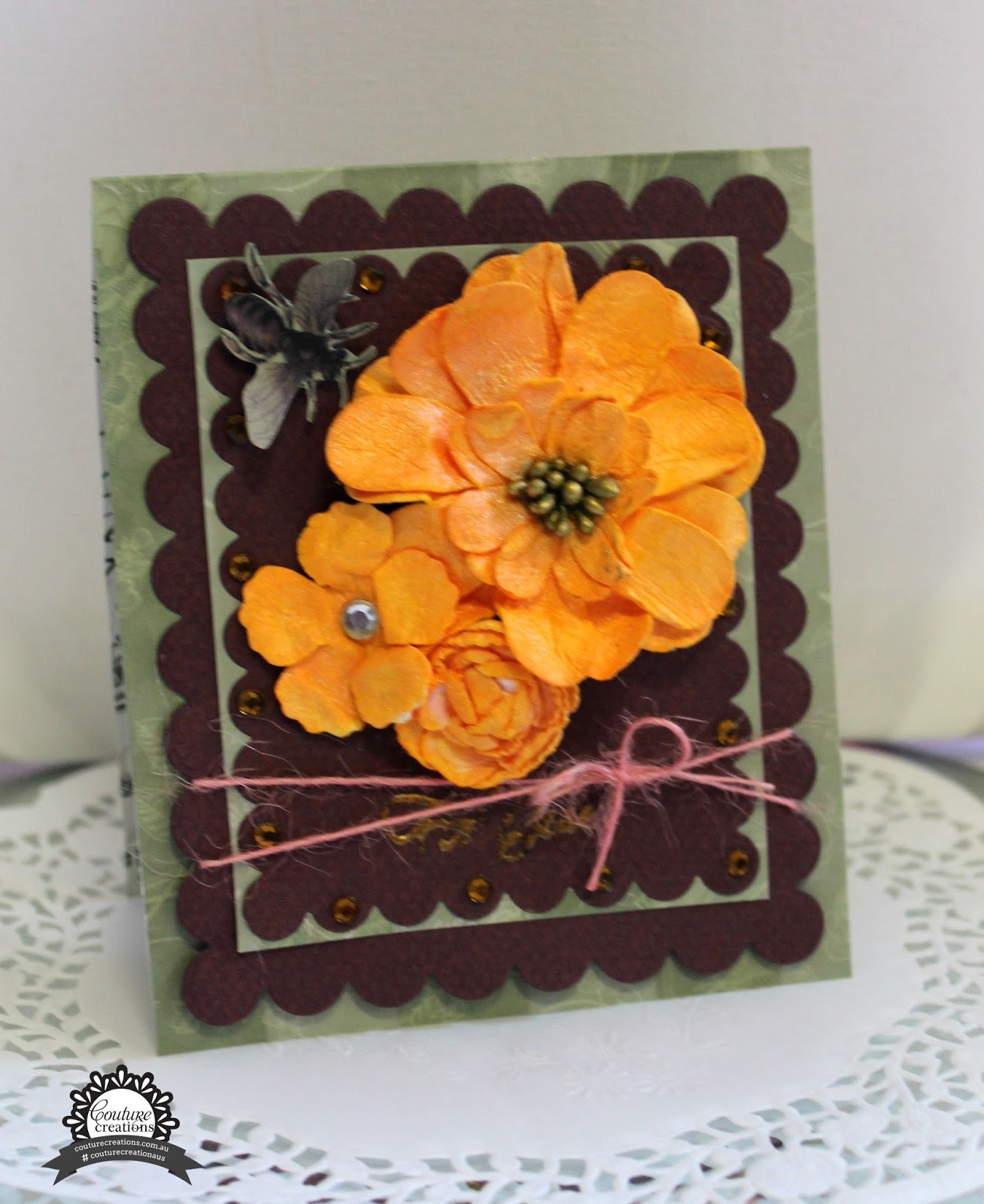 Bernii Miller here with you showing you a cute and easy card that can be made for any occasion using a few Couture Creations elements for high impact.