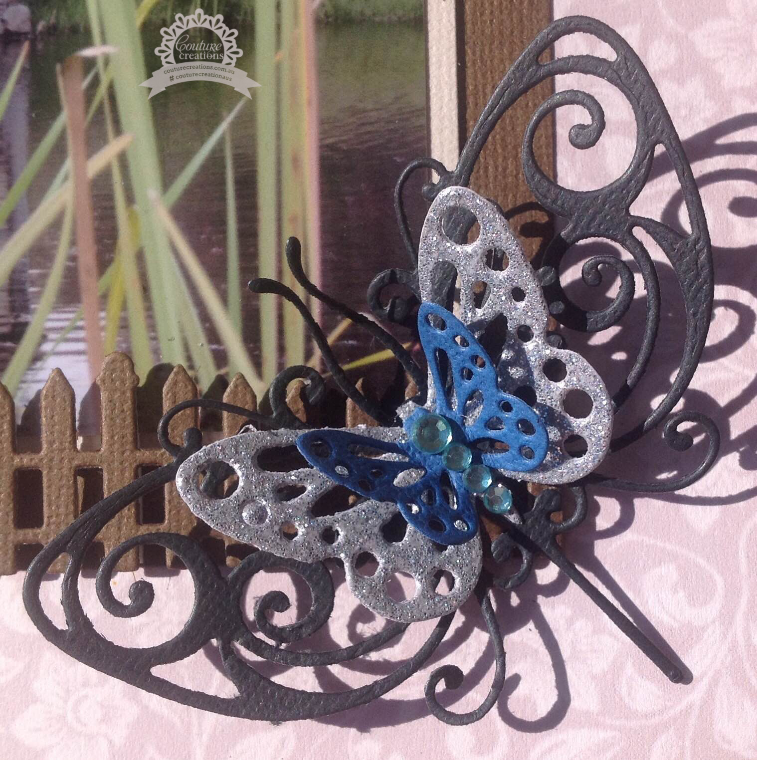 From the Secret Garden Collection cut one of the Layered Butterfly, add Seaspray Gemstones to the body