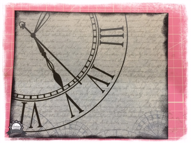 Die cut 3 of the Timesless die in black and glue the three together to give you some depth to the die. Cut 1 of the larger of the two Magnolia Borders die in denim.