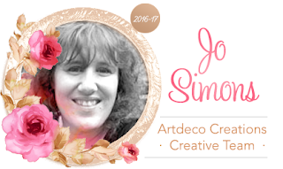 Here is a closer look at my card. So dimensional and sparkly! I then embellished my background with a sentiment from the new stamp and emboss set from the Ritz collection and added some flowers that had been coloured using the Anna Griffin pigment powders.