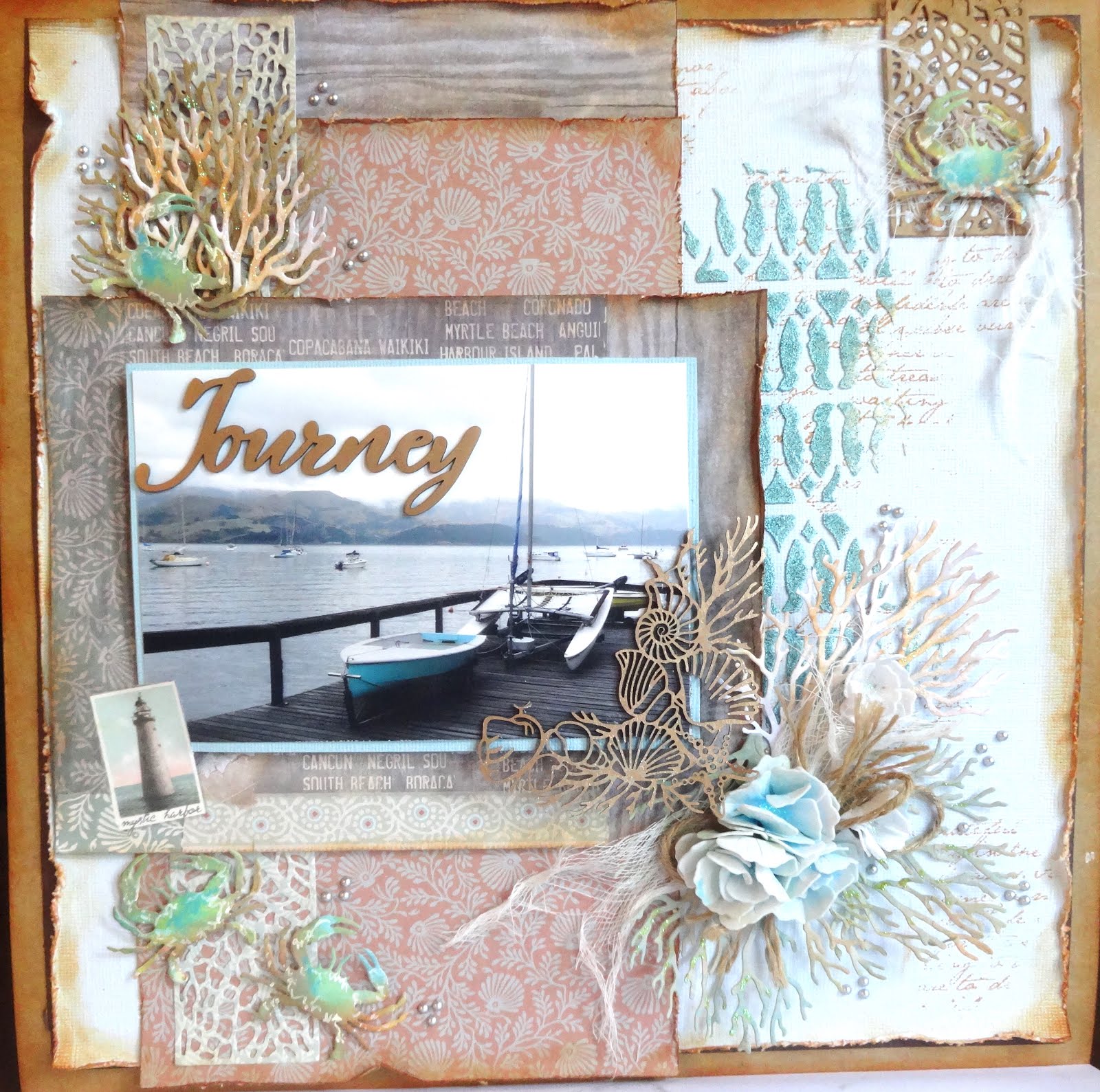 Today I have a layout using the lovely 'Seaside & Me' Collection from Couture Creations. The photos were taken with a cheap little disposable camera; my son had the best time and I simply had to scrap the photos.